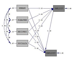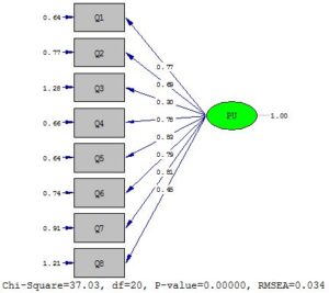 بر اساس نتیجه آزمون اعتبار تفکیک، در جدول 1 مشاهده می شود، هر مقدار بارگذاری متقاطع هر متغیر پنهان قبلاً دارای مقدار بالاتری نسبت به سایر متغیرها است. ارزش اعتبار تفکیک بالا ثابت می کند که یک سازه قادر به ثبت پدیده مورد اندازه گیری است. پایایی مرکب یک پایایی ضریب است که اندازه گیری یک سازه را توصیف می کند. معیارهای قابلیت اطمینان یک متغیر را می توان با بررسی مقدار پایایی ترکیبی برای هر متغیر پنهان ارزیابی کرد. اگر مقدار قابلیت اطمینان ترکیبی بالای 0.7 باشد، یک متغیر نهفته قابل اعتماد است (Chin, 1998).