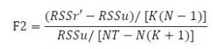 جایی که RSSr مجموع مجذور باقیمانده های مدل ادغام شده (2) و RSSr’ مجموع مجذور باقی مانده های مدل یک اثر فردی (4) است. |